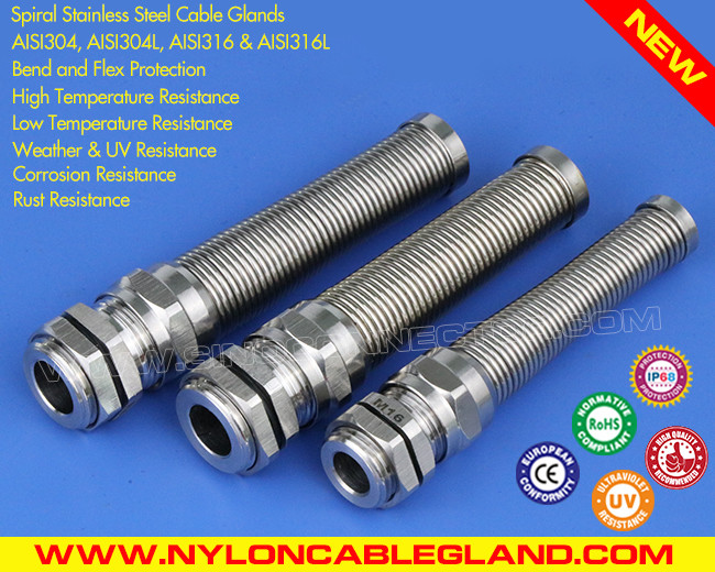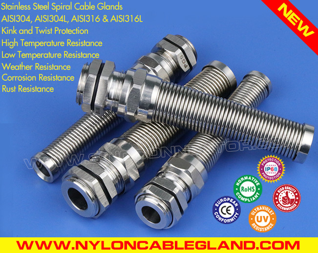 Com vantagens de alta resistência ao impacto e ampla faixa de fixação, resistência a altas e baixas temperaturas e resistência às intempéries, prensa-cabos métricos herméticos IP68 M12 ~ M50 de aço inoxidável tipo 304/316/316L com proteção anti-dobra e dobra vêm com uma mola de proteção espiral adicional e tem a capacidade de resistência química, resistência à corrosão e resistência ao calor, e também tem a capacidade de alta resistência à tração, alta tenacidade, boa resistência à água, excelente proteção contra flexão e longo tempo de serviço.