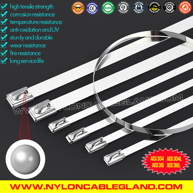 Abraçadeiras (nippusiteet) de aço inox SS316L, SS316, SS304 sem revestimento, laços zip com travamento automático para áreas agressivas são projetadas para proteger feixes de fios e componentes de chicote rapidamente, sem escorregar. Apresentando uma fivela de trava esférica de alta resistência à tração, a maioria das abraçadeiras de metal são projetadas para suportar temperaturas de -80°C a +530°C. Essas abraçadeiras de aço inoxidável estão disponíveis em vários comprimentos, larguras e resistências. Fabricado em aço inoxidável não magnético AISI316L, AISI316 ou AISI304, possui características de resistência à corrosão, calor e frio, intempéries, fogo e não é fácil de envelhecer e possui forte capacidade de carga. Esses envoltórios de gravata são popularmente usados em fábricas de presentes de Natal, fábricas de eletrônicos, fábricas de processamento de fios, fábricas de fios e cabos, fábricas de brinquedos, festivais festivos, lojas de departamentos de papelaria, supermercados frescos, uso diário residencial, eletrodomésticos, conectores, agricultura, jardinagem, iluminação , artesanato, etc. indústrias.