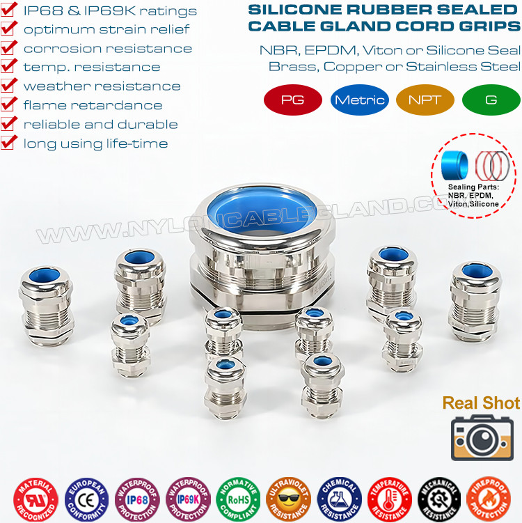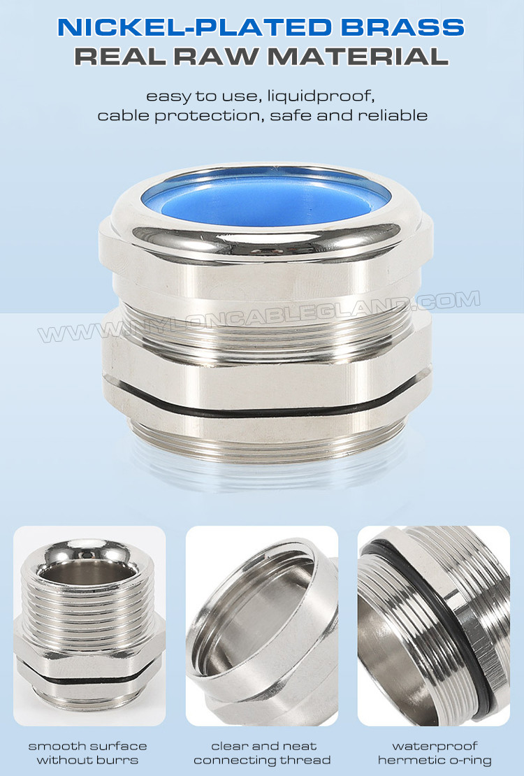 Prensa-cabos PG de latão (cobre) ajustáveis à prova d'água IP68 com vedações de silicone azuis e anéis de vedação e os anéis O são feitos em latão ou cobre não magnético e estão disponíveis em fio de ligação PG.São concebidos para permitir a entrada de cabos em equipamentos ou componentes eléctricos que permitam a ligação à terra., ligação, isolamento, vedação, retenção e alívio da tensão, e oferecem suportes mecânicos para cabos e linhas não blindados.
