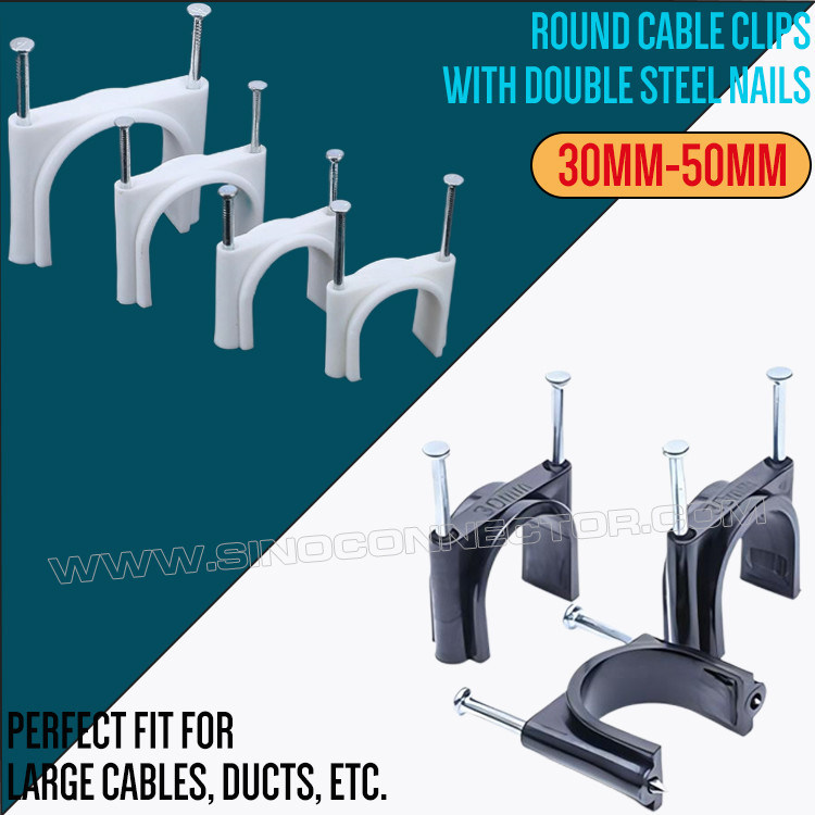 | Nome do produto: | Grampos miguelão Ø2,5~25mm com prego simples, miguelão fixa redondos Ø30~50mm com pregos duplos para gestão de cabos |