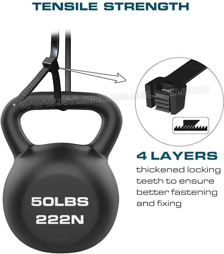 (3) Forte capacidade de carga: é utilizado material à prova de fogo de poliamida 6.6 de resistência industrial, que pode suportar até 50 libras de resistência à tração, apresenta forte capacidade de carga, antienvelhecimento, antiácido, anticorrosão e durabilidade.