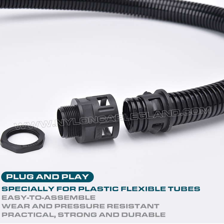 Conectores conduíte métrico M12-M63, conexões retos prensa-cabos plásticos para mangueiras flexíveis AD10-AD54.5 são um tipo de dispositivo de ligação amplamente utilizado na eletricidade,sistemas de distribuição de líquidos e gásTem um alto desempenho de vedação e é especialmente utilizado para conectar tubos ondulados. Pode manter conexões seguras e confiáveis durante o transporte de alta temperatura,líquidos ou gases de alta pressão e corrosivos.