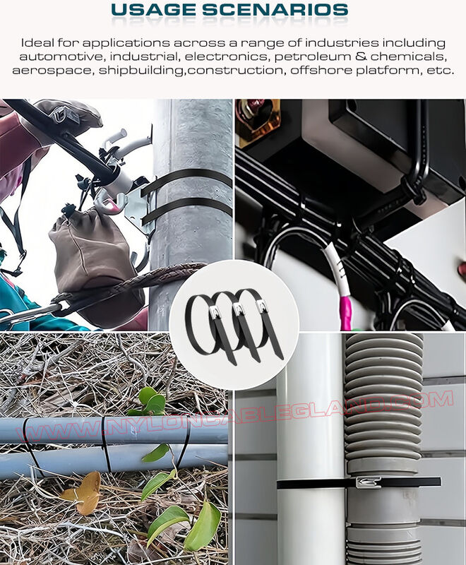 | Uso: | Fixar e organizar cabos, fios, tubos, plantas, etc. | Aplicação: | Amplamente utilizado para uma variedade de ambientes agressivos |